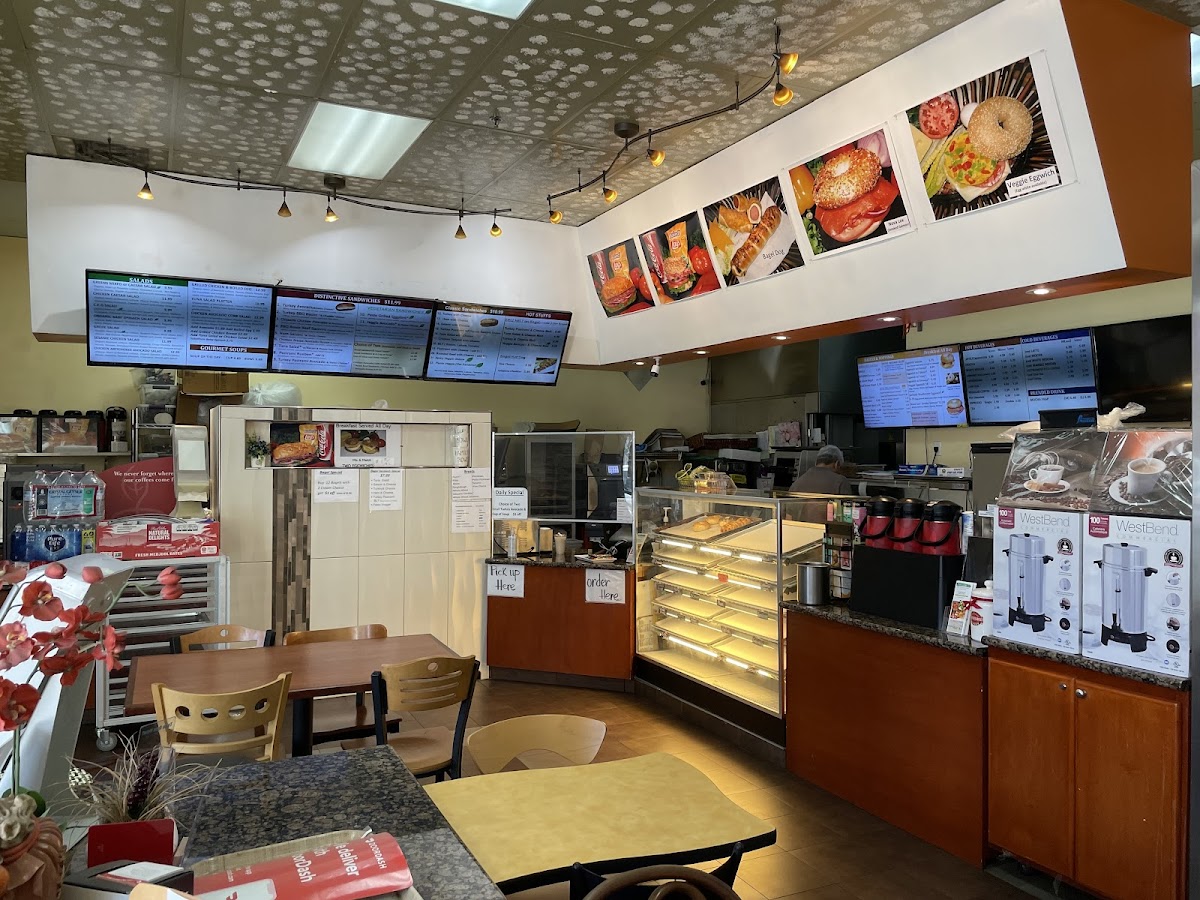 The café’s footprint is modest with limited seating, which suggests it leans heavily on takeaway orders. This suits early commuters or neighborhood residents who want to grab a fresh bagel or muffin and pair it with a cup of coffee or tea before heading out. The atmosphere inside is simple and functional rather than designed for lingering, making it a practical stop rather than a place to spend hours.